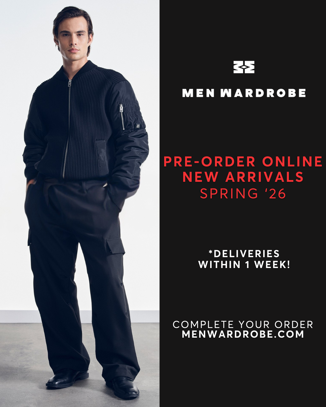 THE LATEST SPRING '26 ARRIVALS, NOW AVAILABLE TO PRE-ORDER ONLINE EXCLUSIVELY AT MENWARDROBE.COM
