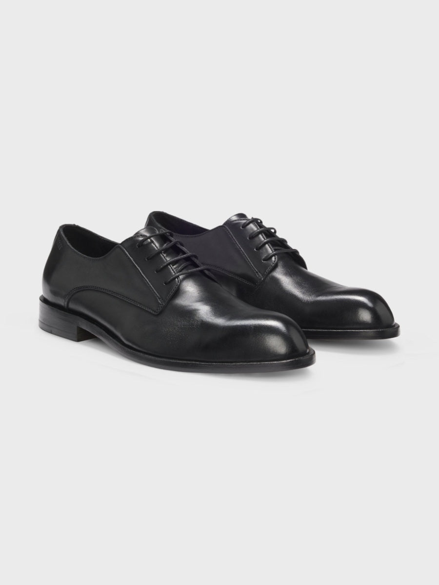Derby shoes in leather with embossed logo