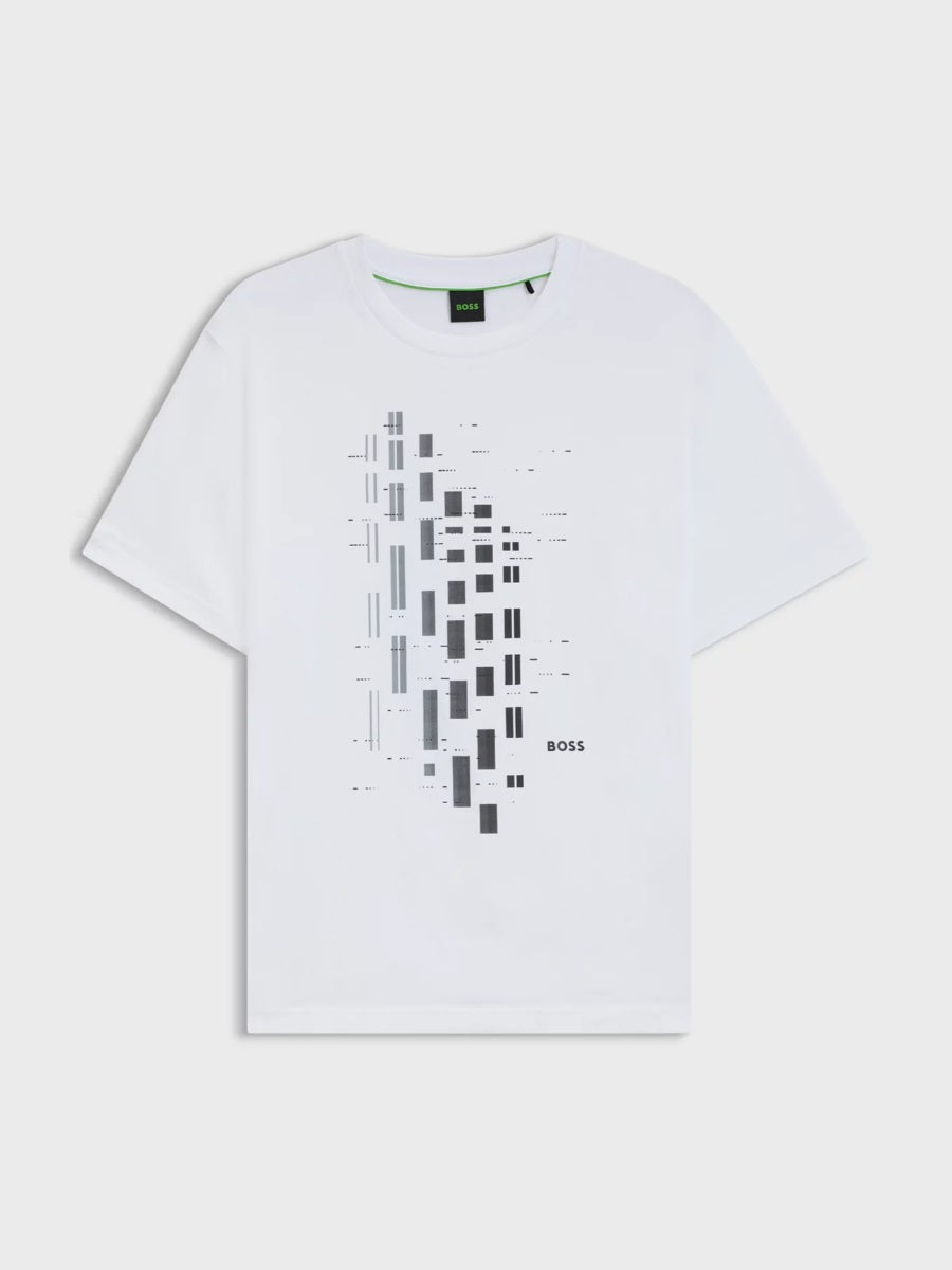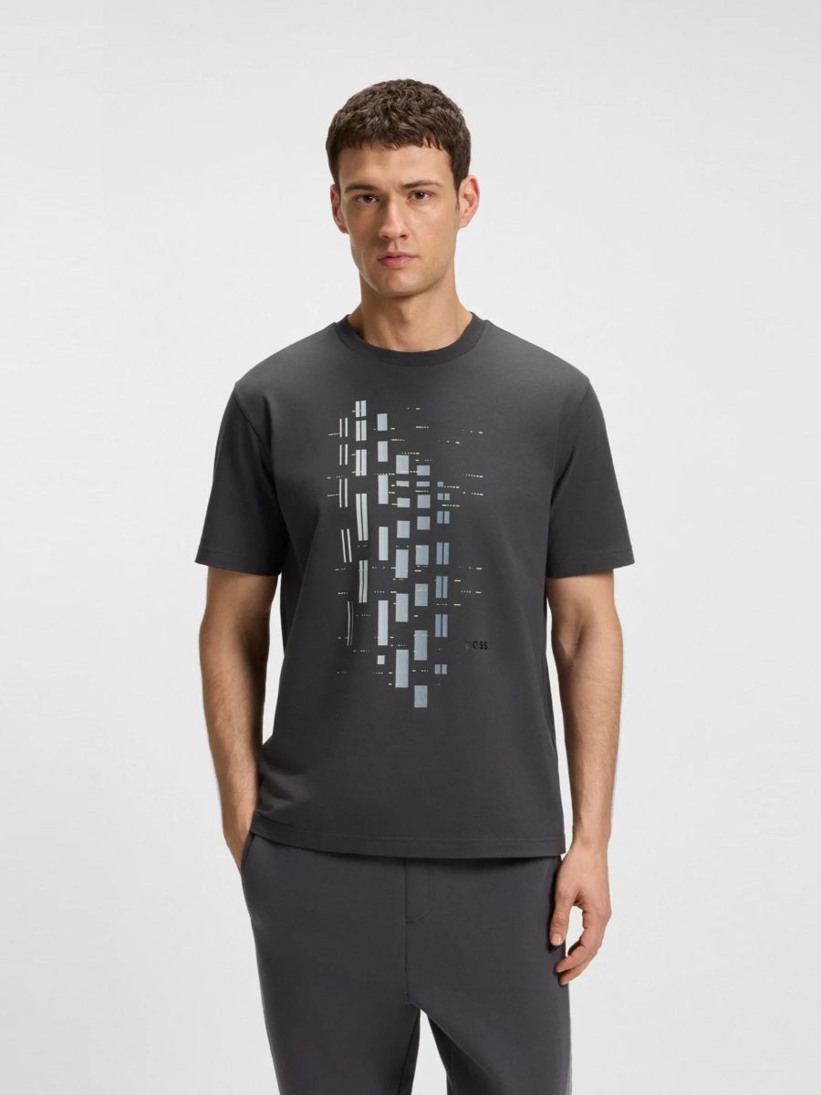 Stretch-cotton T-shirt with geometric print