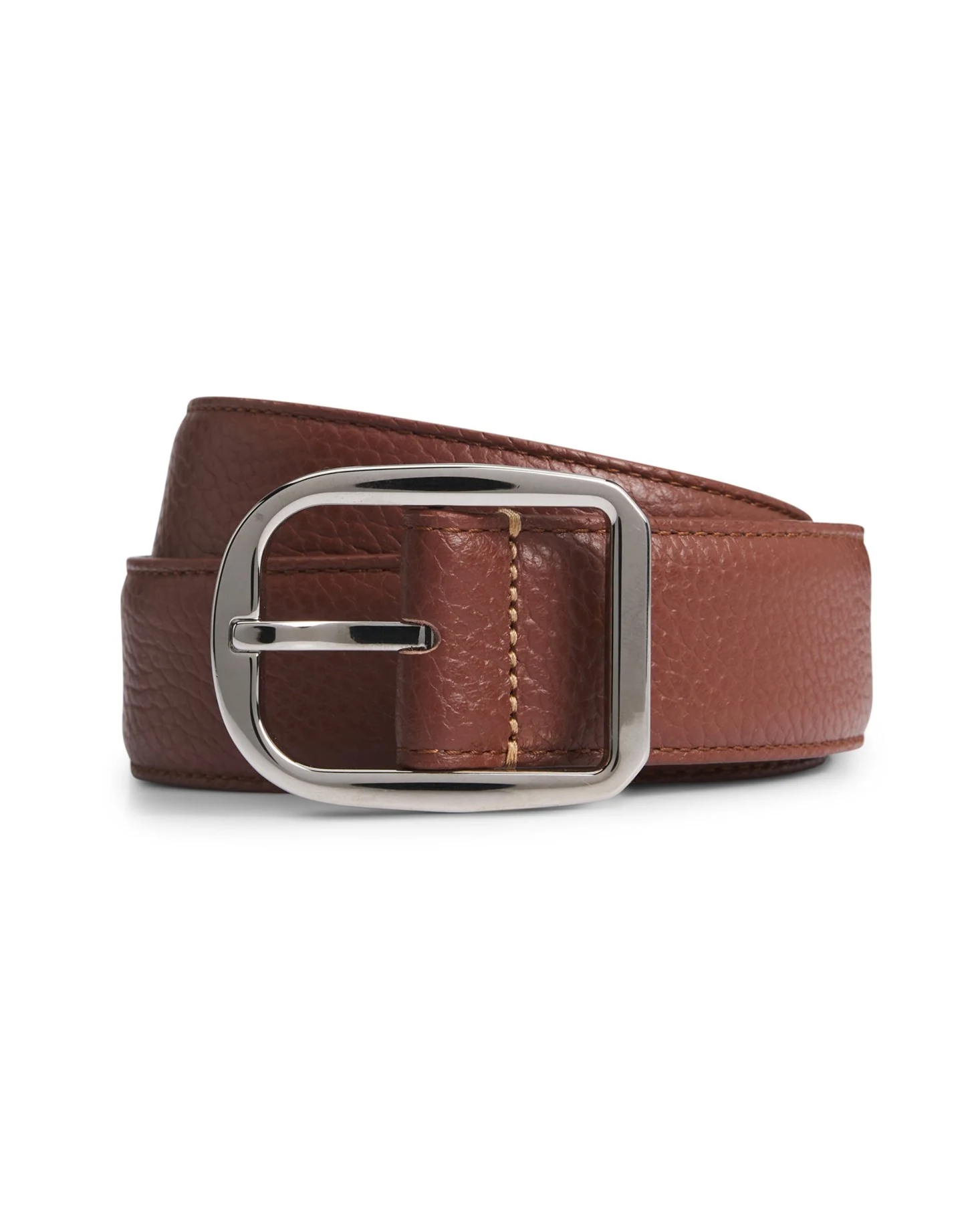 Italian-leather belt with polished gunmetal buckle